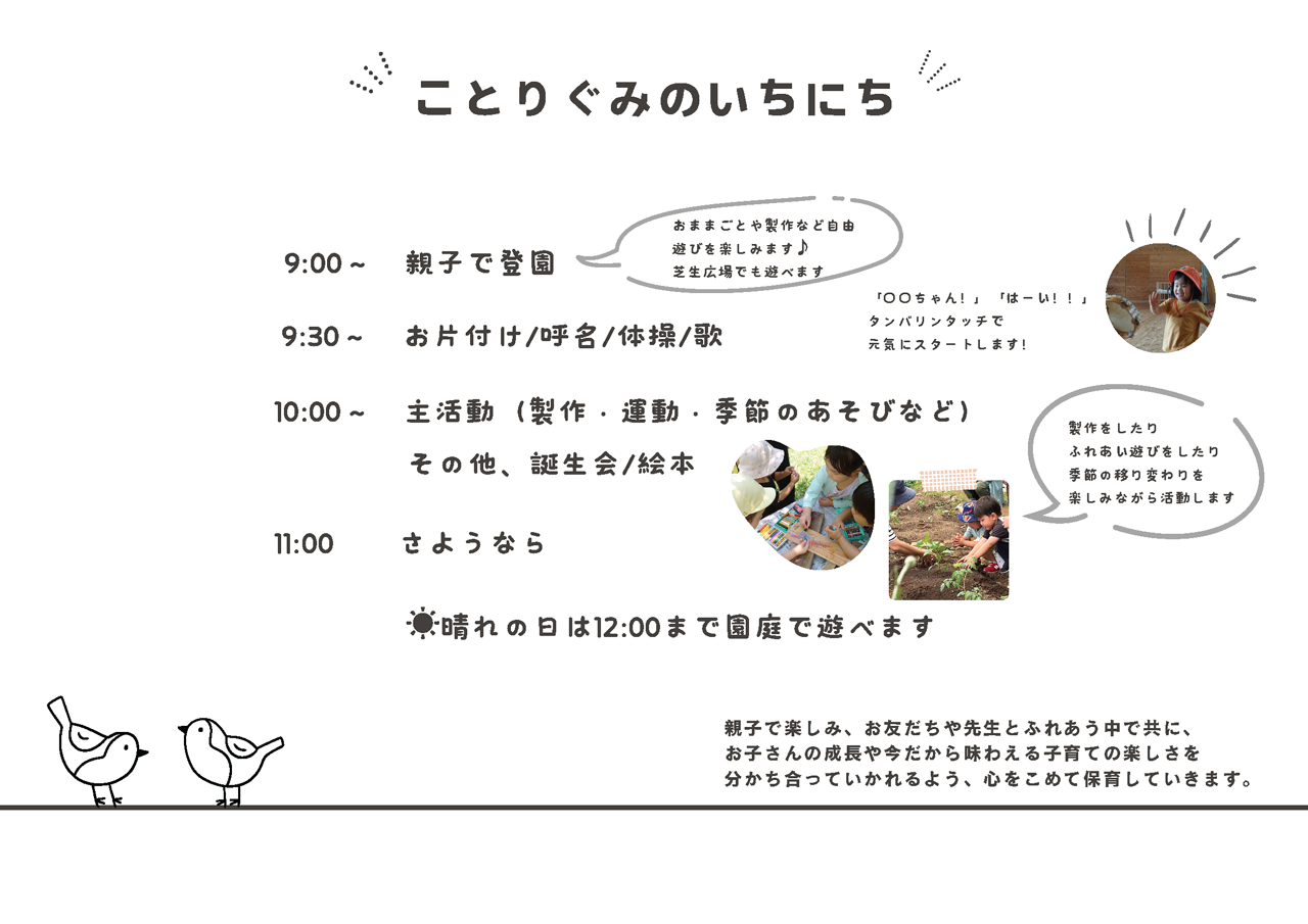 ▲ことりぐみ・おひさまぐみの1日